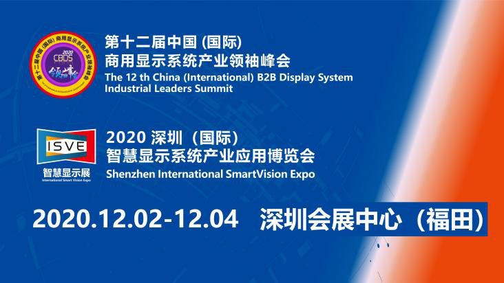 第十二屆中國(國際)商用顯示系統產業領袖峰會(CBDS)暨2020深圳(國際)智慧顯示系統產業應用博覽會(ISVE)將于12月2-4日在