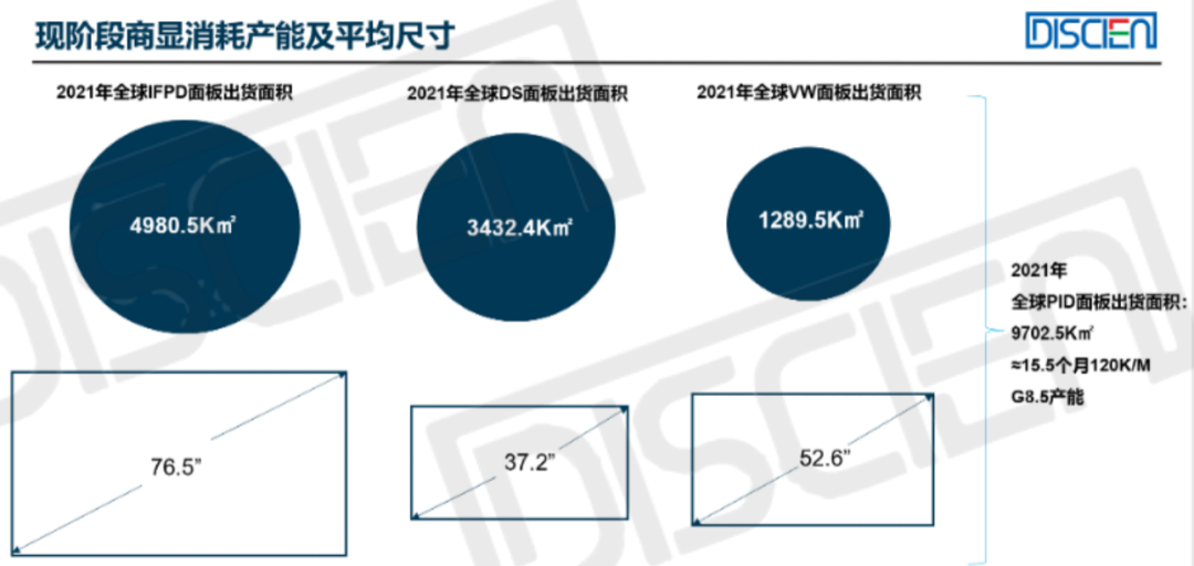 圖二:2021年全球商顯消耗產能及平均尺寸